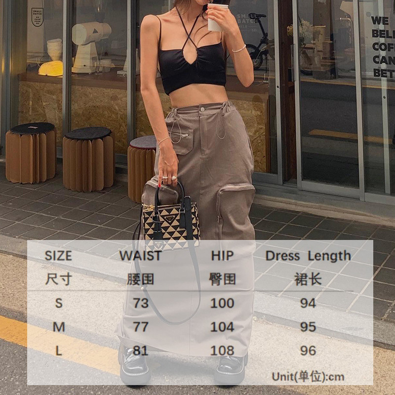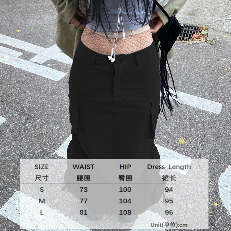 WeiYao Khaki Casual Long Cargo Skirts Women Stitching Vintage Baggy Streetwear Outfits Split Low Waist LooseSize Skirt