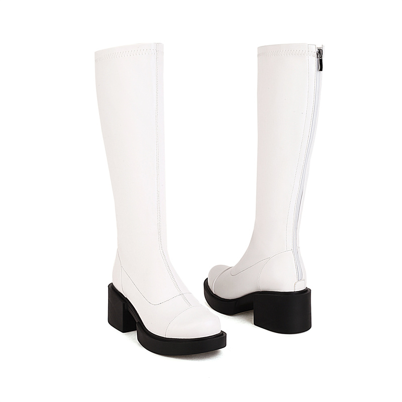 Woman Knee High Boots Trend Winter Retro Round Head Small Platform Women Shoes Casual Mid Heel Print Boots