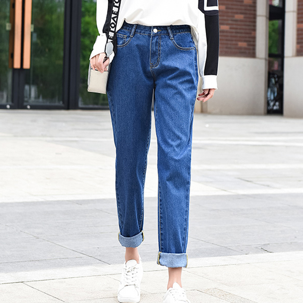 Women Jeans Vintage Straight Mom Jeans Loose Blue Denim Pants Ankle Length Trousers Female Casual Streetwear Harem Pants Jeans