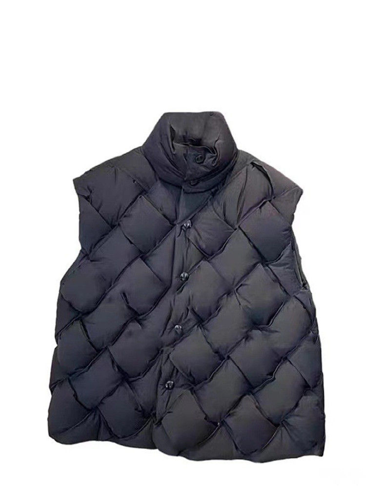 Women Solid Color Parkas Single Breasted Stand Collar able Woven Pattern Loose Sleeveless Vest Coat