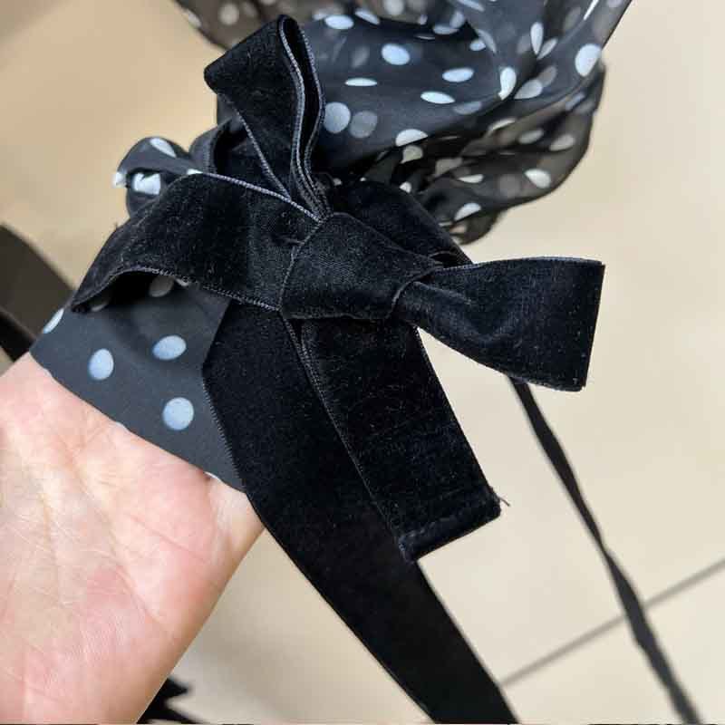 New Women Square Collar Polka Dot Off Shoulder Pullover Top Long Sleeve Lace-up Design Crop Top Fashion Streetwear Sexy Tee.A0646
