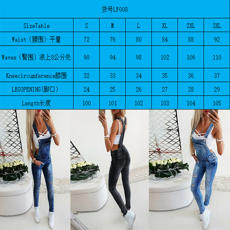 Women's Broken Hole Jeans Jumpsuit Long Female Pants Overalls One Piece Skinny Jumpsuit High Street Spring Autumn Wear