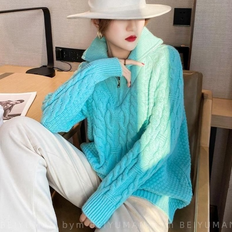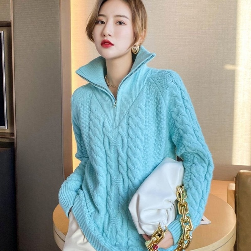 Women's Jumper Loose Womens Winter Sweaters Oversize Turn-down Collar Zippers Solid Knitted Tops Female Turtleneck Women