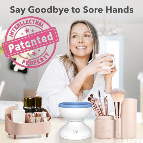 Alyfini Makeup Brush Cleaner Machine - Electric Make up Brushes Cleaner Cleanser Professional Tool for Kabuki Foundation Liquid Powder Face Makeup Self Tanner Brush,Gifts for Women Stocking Stuffers
