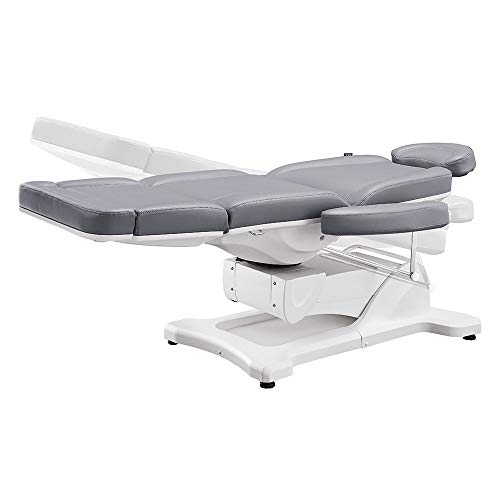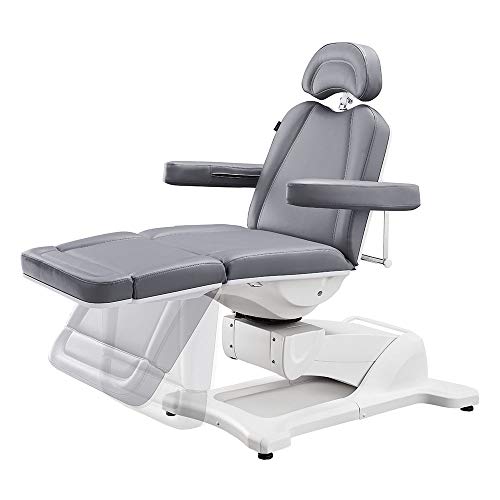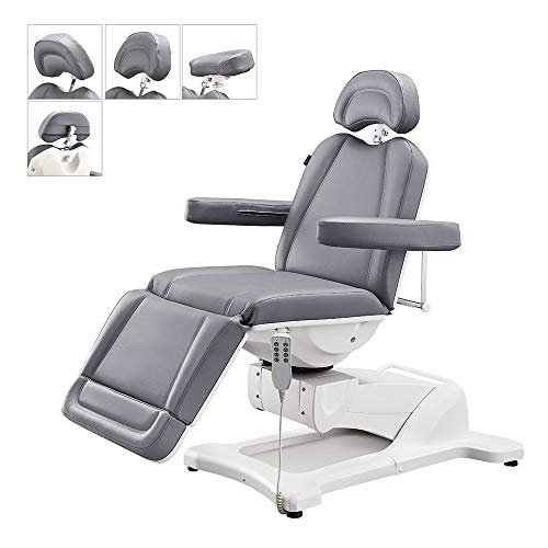 Heavy-Duty Facial Beauty Bed/Chair with 400 lbs weight capacity High grade faux leather with high density foam for both comfort & durability Dual headrest included for all types of beauty & medical facilities, easily interchangeable for all types of procedures 4 Individual Electro-hydraulic motors to smoothly & quietly operates the Backrest, Leg-rest, Height and also Tilt adjustments 8 Button remote control for easy operation Manually adjusted 180 degree rotating seat Removable arms for versatility Fully assembled out of the box Power requirement: 110 Volts