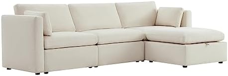We purchased this to use in the main TV room for a second house/rental and it’s a great value for the price.The seat cushions are very firm, which hopefully means they’ll hold up well for a long time, the fabric is like a performance canvas material and soft yet durable (read a few comments about it being scratchy but we haven’t found that at all, but it is not meant to be a super soft plush material), and the gray color is lovely (specifically chose that to help hide any stains as it’s a rental).The only small critique is the back cushions are a little thin but we haven’t noticed this affect comfort at all and we don’t feel the backrest through the cushions when sitting back. The height of the backrest is low which is exactly consistent with the more modern style sectionals, so if you’re looking for a tall back to rest your head against this is not the couch for you. I also like that the individual cushion covers are washable, which we haven’t tested out yet. The storage space in the ottoman is also huge which is a handy feature.The individual sectional pieces came very efficiently packaged and was easy for me (smaller mid-30s woman) to assemble by myself over an hour to two (we also purchased the loveseat).Customer service was extremely responsive for one question I had for them.Overall for the price paid this is a very good value and comfortable and functional couch.We have a C&B sectional for our main house which is definitely a higher quality however we paid over double the price for it so I am extremely happy with this item at this price point and anticipate many, many years of movie nights on these couches.