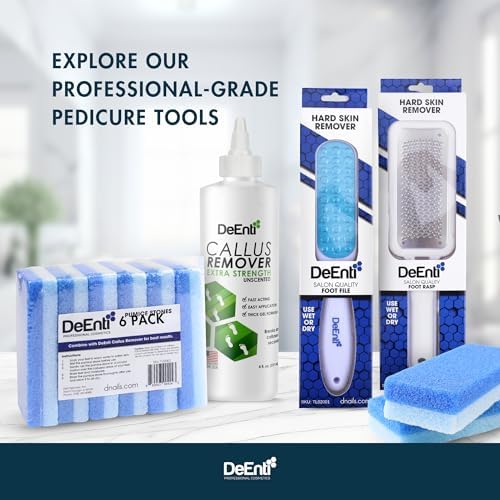 Skip the expensive pedicure supplies, salon cost and visits. DeEnti Callus Remover Gel for feet is easy to use and effective. Simply soak feet, squeeze bottle to disperse product directly to callused areas, wait 3-5minutes and use pumice stone to remove corns and calluses. Finish with cuticle oil.