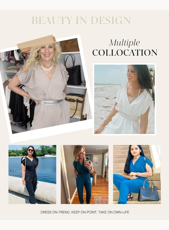 High WaistDesign:Super flaterring cute Jumpsuits for women,the elastic smocket atthe waist lifts your waistline,hides your mom-tummy, it’s great that thepants have elastic at the bottom, looks cute with heels or flats.