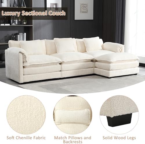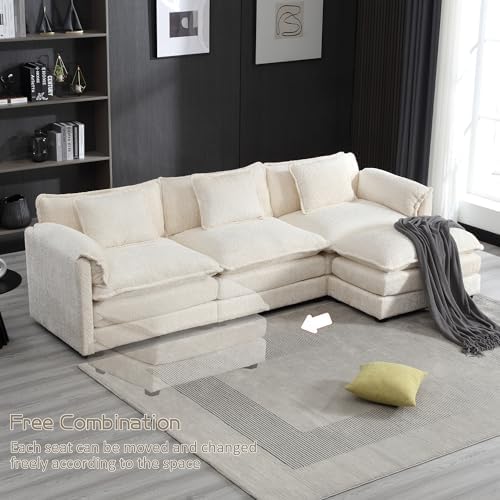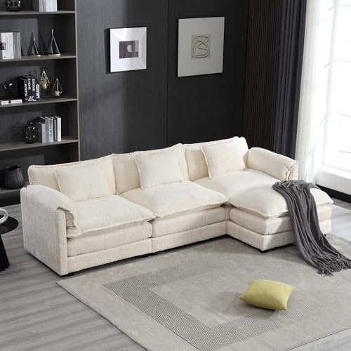 The cloud couch sectional comes with a convenient and versatile removable ottoman, allowing you to customize your seating arrangement according to your preferences and needs. Sturdy solid wood frame, chenille fabric, filled with high-density sponge, making this modular sectional sofa beautiful and comfortable, L shaped living room sofa couch with L shape can be against the wall which is suitable for small living rooms, apartments, home offices.