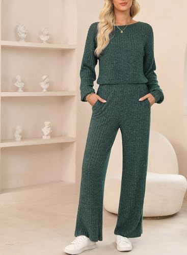 Women Casual Stretchy Ribbed Long Pants Rompers with Pockets Fall Outfits 2024
