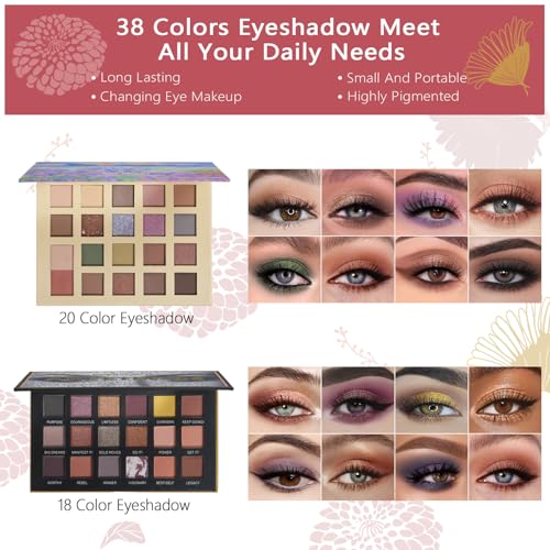 Makeup Kit Sets for Teens Women Full Kit with Bag,All in One Make-Up Gift Set Including 20 Colors Neutral Eyeshadow Palette,Lip Glosses,Eyeliner,Mascara,Eyebrow Pencil,Foundation,Brushes & More Kits