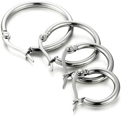 I bought the ORAZIO 4 Pairs Stainless Steel Hoop Earrings Set Cute Huggie Earrings for Women and I really love my purchase. These earrings are not only stylish, but they are also incredibly durable and don't irritate my sensitive skin. The stainless steel material used in these earrings is of high quality, ensuring that they have not tarnished or lost their shine over time. I have worn them for several weeks now and they still look as good as new. The variety of hoops are the perfect size, not too big or too small, and they hug my ears comfortably. What I love most about this set is the variety it offers. With eight different pairs of earrings, I can easily switch up my look depending on my outfit or mood. The simple yet elegant design of these hoops makes them versatile enough to be worn for both everyday and special occasions.The clasp on these earrings is secure, so I never have to worry about them falling off or getting lost unlike other hoop or dangly earrings. This gives me peace of mind knowing that I can wear them all day without any issues. Additionally, they are lightweight, making them comfortable to wear for extended periods, even overnight. They are a great value for the price and I am confident that they will continue to be a staple in my jewelry collection for years to come.