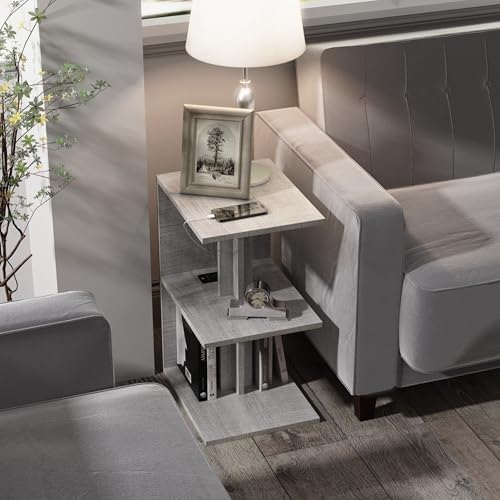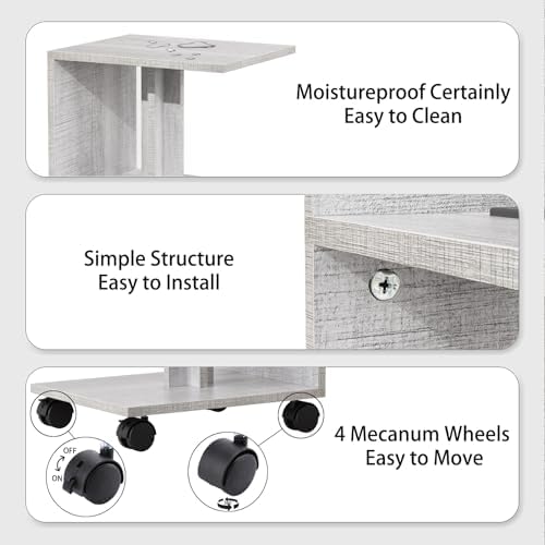 FROMJBEST Set of 2 Nightstand with Charging Station For Small Spaces, End Table Side Table for Living Room ,3 Tier Sofa Bedside Tables Bedroom (Grey)