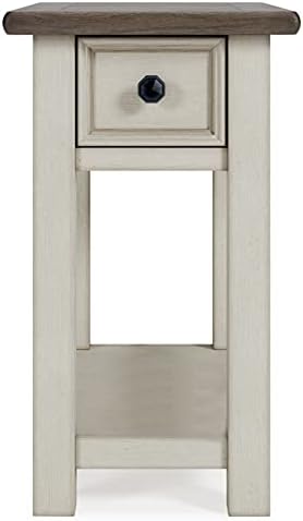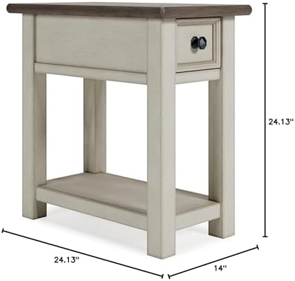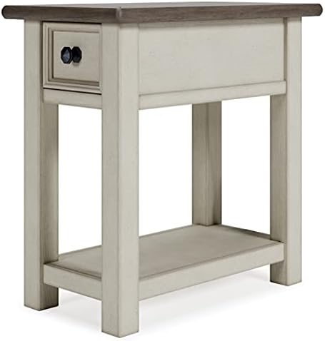 The Signature Design by Ashley Bolanburg Farmhouse Chair Side End Table is a charming addition to my living area. Its light brown and whitewash finish perfectly captures a rustic farmhouse aesthetic, enhancing the room's cozy vibe.Build Quality: Sturdy and well-crafted, it stands firm and functional, ideal for daily use.Size and Functionality: Compact yet spacious, it comfortably holds essentials like a lamp and books. The added drawer and shelf are great for extra storage.Versatility: Beyond just a side table, it works wonderfully as a nightstand or a hallway accent piece.Assembly: Assembling was a breeze with clear instructions, requiring no additional tools.Value: The table's quality and utility make it a great investment for its price.In summary, this end table is a blend of style, utility, and durability, making it a fantastic choice for anyone seeking a practical piece with a farmhouse flair.