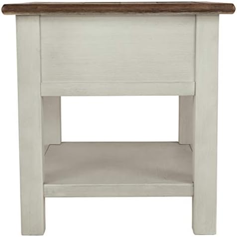 I've been looking a side tables for about 6 months.My other tables are black & I have a dark cherry tv stand w/ built in fireplace.I thought this table would be a bit darker than it is; but, I'm keeping it anyway.I thought I'd have to put it together from start to finish.Nope.I opened it & realized that I needed my husband to help me lift it out of the box because it was pretty much all put together.I removed the remaining packing material from around the table as it is very well wrapped.There is a shelf & brackets to insert inside the table to hold the shelf located under the table.I simply removed them from underneath the table, placed the brackets in the table compartment (there are 3 shelf heights to choose from), plugged in the cord, & I was done.The table looks great, all the outlets & charging plugs work great, the height is perfect, & it fits nicely between 2 rocker recliners in a space with limited room.My one complaint is that there was a bit of chipping on the finish on the base right in front of the door.I happen to own some furniture markers; so, I was able to give it a 5 second touch up that no one will ever notice.The box did come damaged & had tape on a few places that the shipping company put on.The table was so well packed that none of the damage to the box caused any damage to the table.I also love the price.I'd been looking at this on Amazon & other online retailers regularly hoping to see a price reduction and Amazon came through.I was able to buy this for $115.00 which is a phenomenal price.My local well known furniture store wanted about $300 for similar tables.One online retailer known for good pricing was offering this same table for $179.00.So, I am thrilled with my purchase.My family room looks finished now that I no longer have a tray table between my recliners.It wasn't a good look.Anyway, if you are looking for this type of table, I highly recommend this.It's a very well built table.It's a bit heavy so it won't get knocked or out of place accidentally.Love the magazine rack on the back.I can put my remote control caddy inside the compartment with plenty of room for other items and fit a full box of tissues on the shelf in the same compartment.I leave a phone cable plugged in & my husband & I charge our phones & tablets with no hassle.I leave a lamp plugged in & currently have my laptop plugged in.I always had to run an extention cord before so I could plug in multiple items.I didn't think much of it until I got this table.It's made plugging things in so much more convenient.I hope my review helps you make your decision.I didn't include photos as they really wouldn't look any different than the seller's photos.What they show you is definitely what you get.