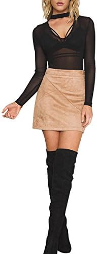 Cute high waist mini skirt: above knee length high light your slender legs; empire waist shows your sexy curves and feminine, classic basic solid color faux suede mini skirt, slim fitted skirts, elastic waist and zipper back.