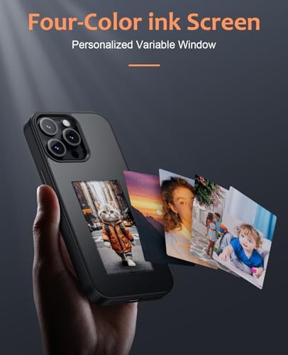 kosprie E Ink Phone Case,Smart DIY 3-Color Electronic Ink Screen Phone Case,Can Display Image 3.5inch On Ink Phone Case,Smart NFC Phone Case Photo for iPhone 15 PRO Max(Black)dummy