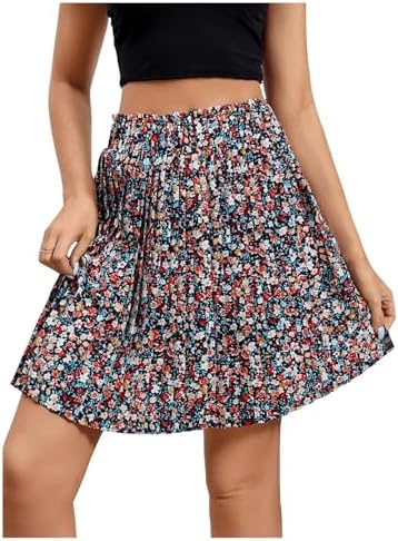 SweatyRocks Women's High Waist Mini Pleated Skater Skirt Flared A-Line Floral Short Skirt