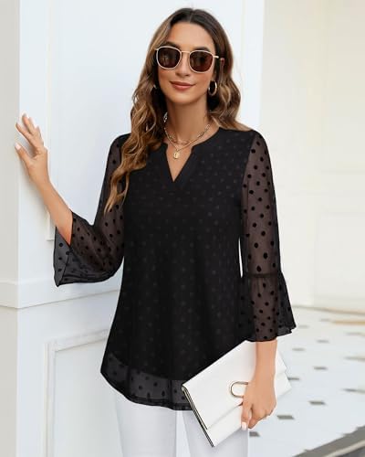 Timeson Women's 3/4 Sleeve Tops and Blouses V Neck Business Casual Shirts