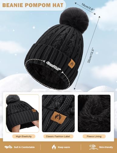 HEEKPEK Women Winter Hat Long Scarf Touchscreen Gloves Earmuffs Socks 5 in 1 Set