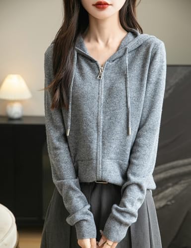 Women's 100% Merino Wool Zip Up Hoodies 2024 Fall Winter Warm Long Sleeve Knit Sweatshirt Cardigan with Pocket