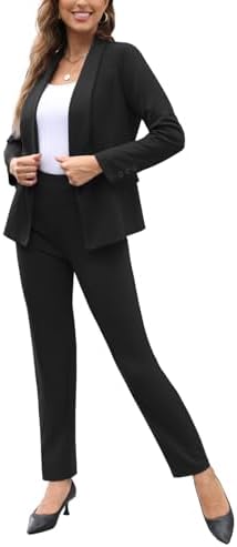 Women's 2 Piece Outfit Casual Solid Open Front Blazer and Pencil Pant Suits Set