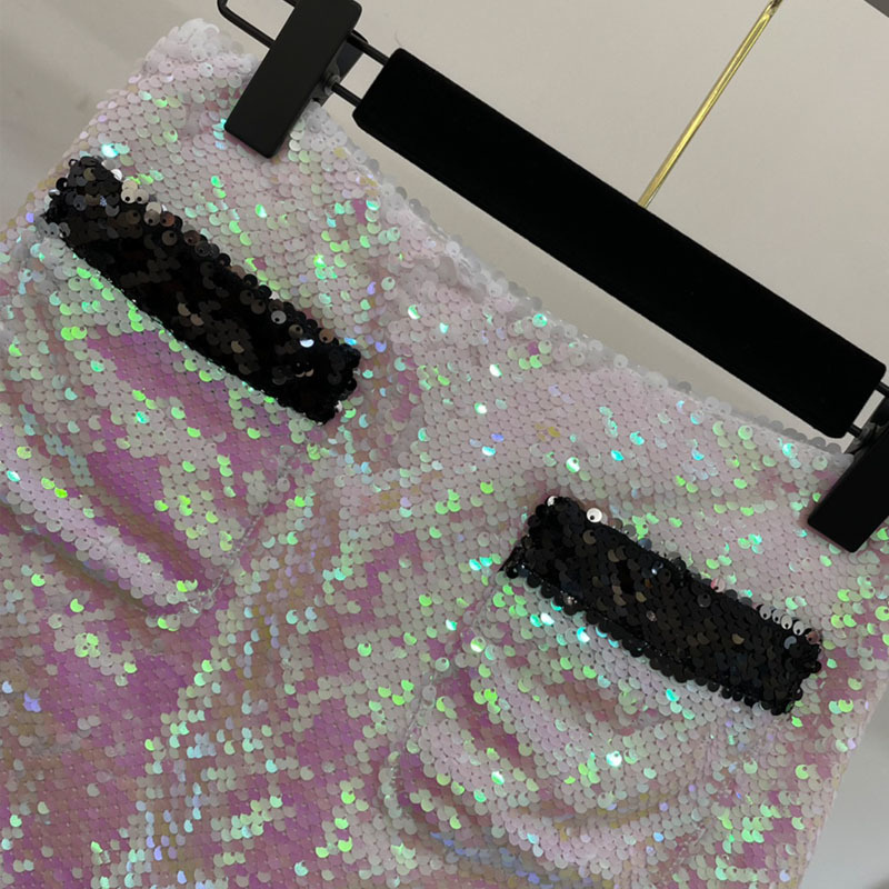 22 Summer Sequins Pink Mini Skirt Set Women Sexy Chain Buttons Wrapped Chest Camisole Top Fashion Show Pockets Hips A Line SkirtA0536