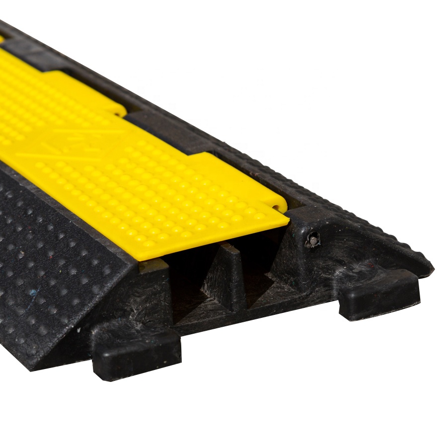 It is usually being placing at the passage of the factory, parking lot, exhibition centre, performing-arts centre, stadium or concerts, especially those places which cars often pass by. This cable protector can easily hide those cables and prevent them being exposed outside, meanwhile, it protects cables from being crashed or pressed. It's incredible insulativity can withstand 2500V voltage. The bright yellow safety lid with warning symbols can easily attract people's attention.
