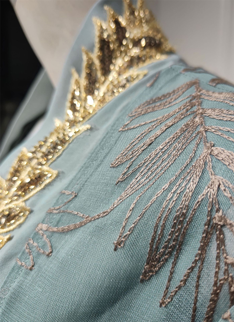 Design: Delicate embroidered sequin appliqué