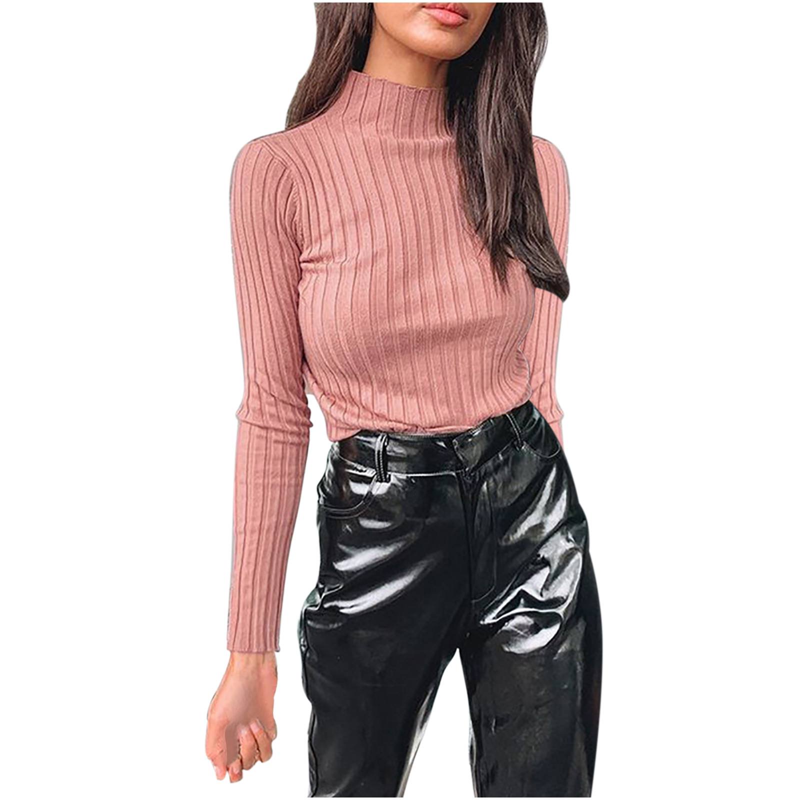 Women's Fashion Solid Long Sleeve Slim Turtleneck Pullover Sweater Blouse