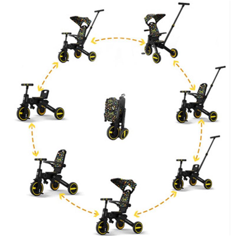 uonibaby 7 in 1 Three Wheels Baby Stroller Tricycle Slid Baby Artifact Trolley Walking Baby Foldable Light Baby Bicycle