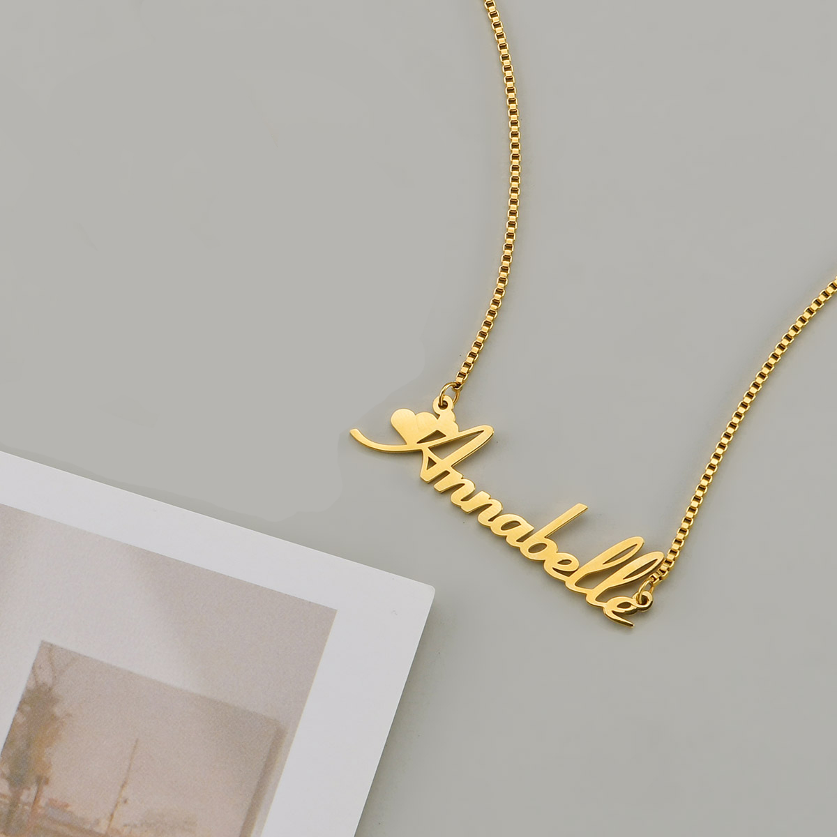 Name:Atoztide Custom Name Necklace Stainless Steel Box Chain Blade Nameplate Pendants Heart Personalized Letter for Women Jewelry Birthday Gift