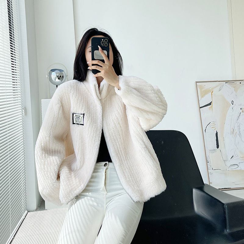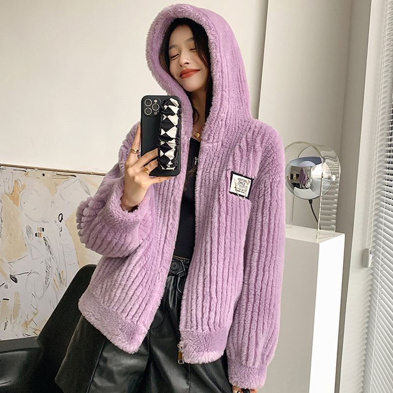 Autumn and Winter All Wool Stand Collar Hooded Fur Coat One Sheep Sheared Wool Lamb Jacket Women Double-faced Fur