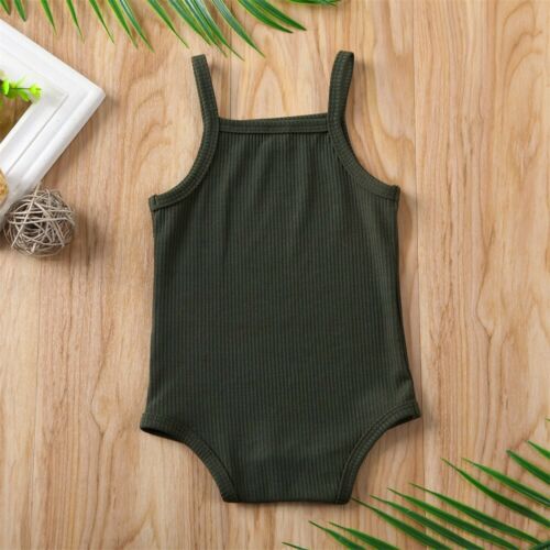 Baby Summer Clothing Newborn Baby Boy Girl Sling Bodysuit Jumpsuit Sleeveless Outfit Ribbed Solid Clothes Set