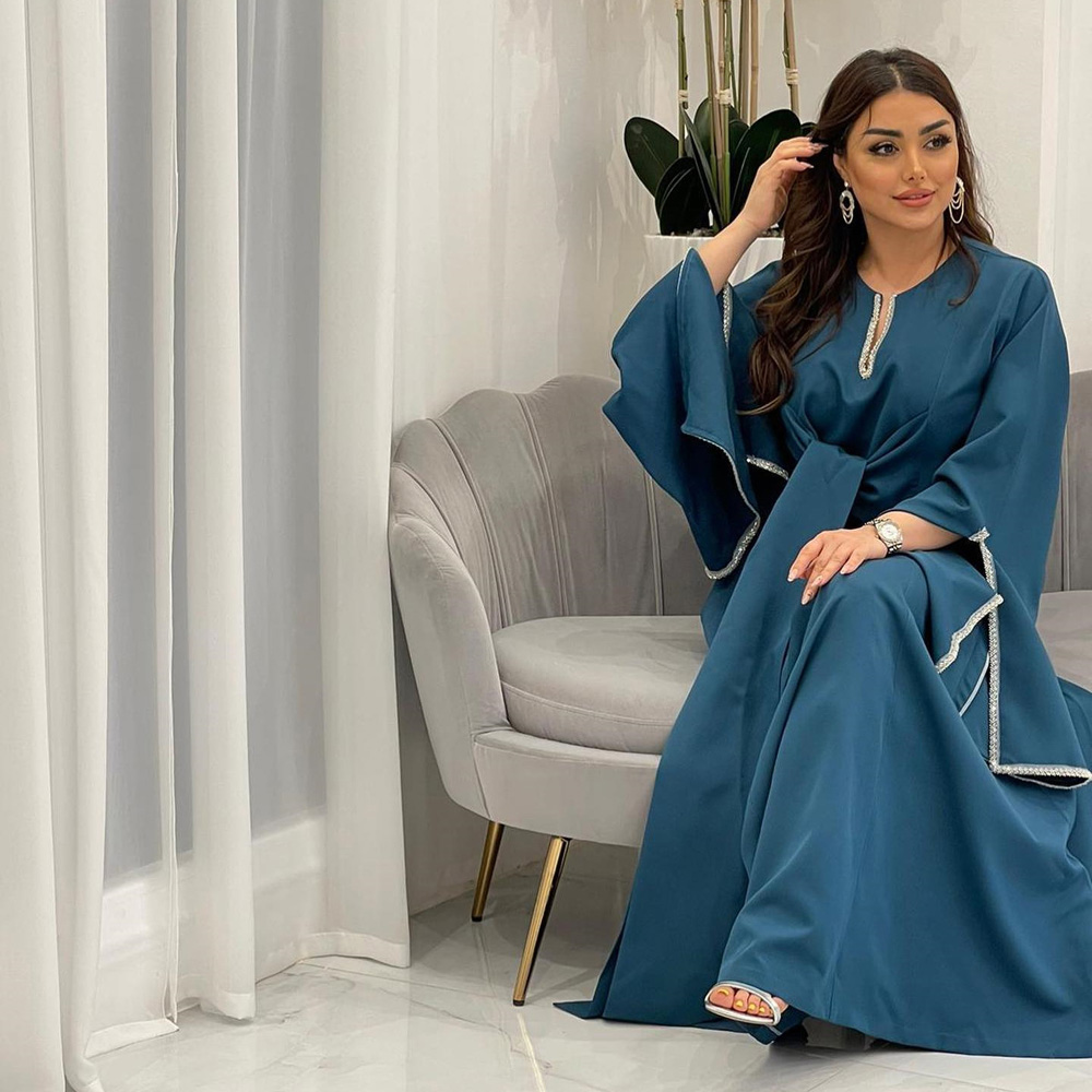 Blue Maxi Dubai Evening Party Formal Dress Ramadan Abayas For Women Muslim Islam Kaftan Jalabiya Clothing Long Sleeves