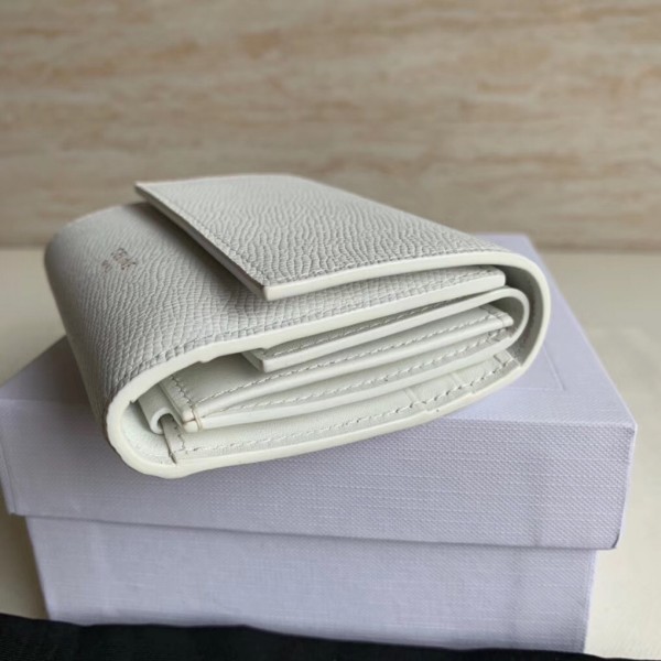 Crafted in grained calfskin leather by the House of Celine, this small trifold wallet with a flap offers enough space to fit into even a tiny bag or clutch, yet with space for coins, notes and credit cards, this neat wallet is the ultimate mini companion. Coupled with an elegant design with golden finishing touches.