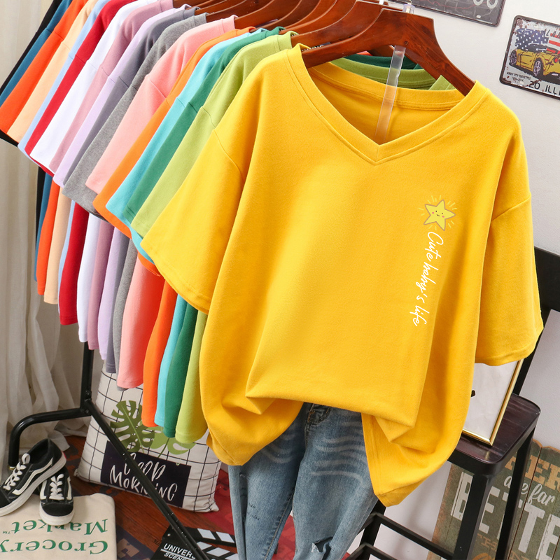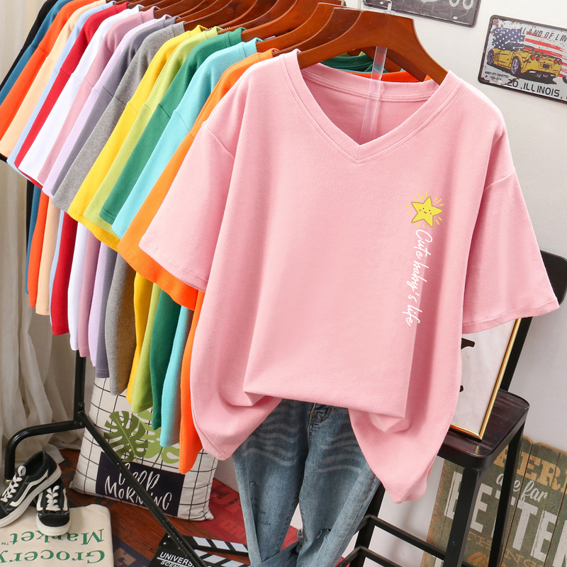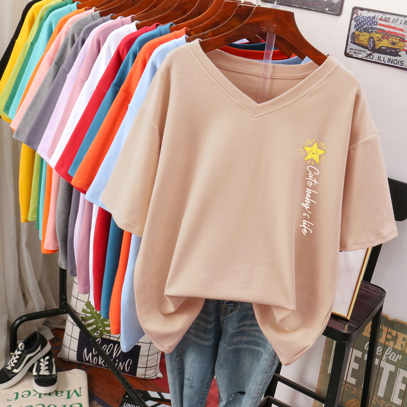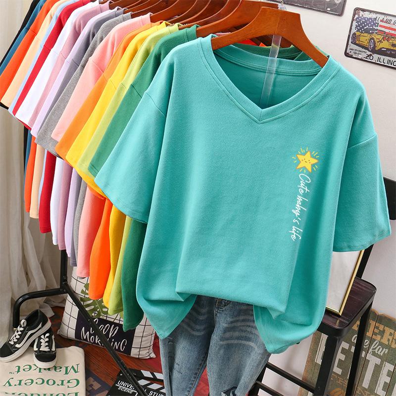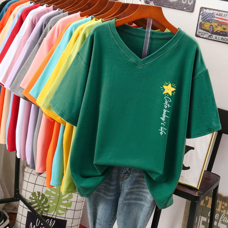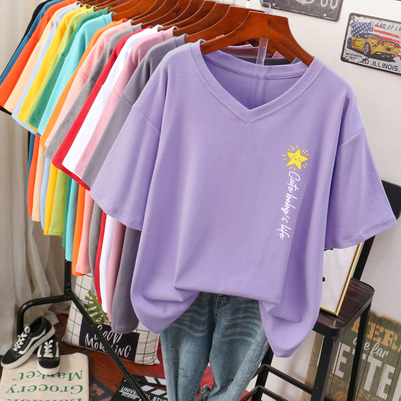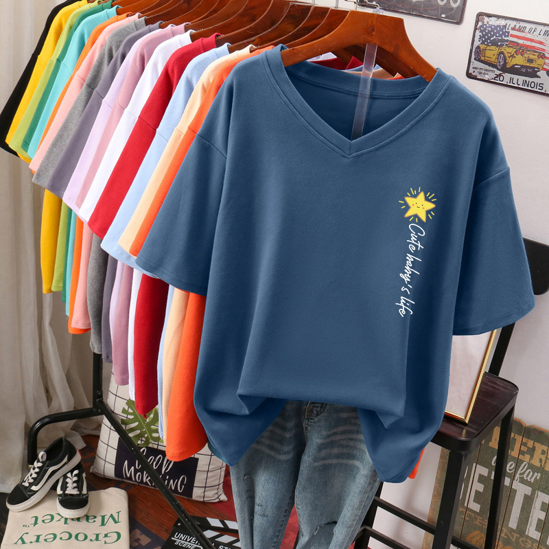 DAYIFUN Plus Size T Shirt L-6XL Tshirt Short Sleeve Women's Top Summer Stars Print Casual O Neck Oversized T Shirts