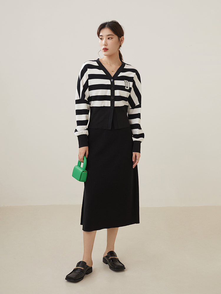 DUSHU Casual Knitted Skirts Women Autumn High Waist Commuter Black All-match Slim Thin Female Hip Skirts Bottoms
