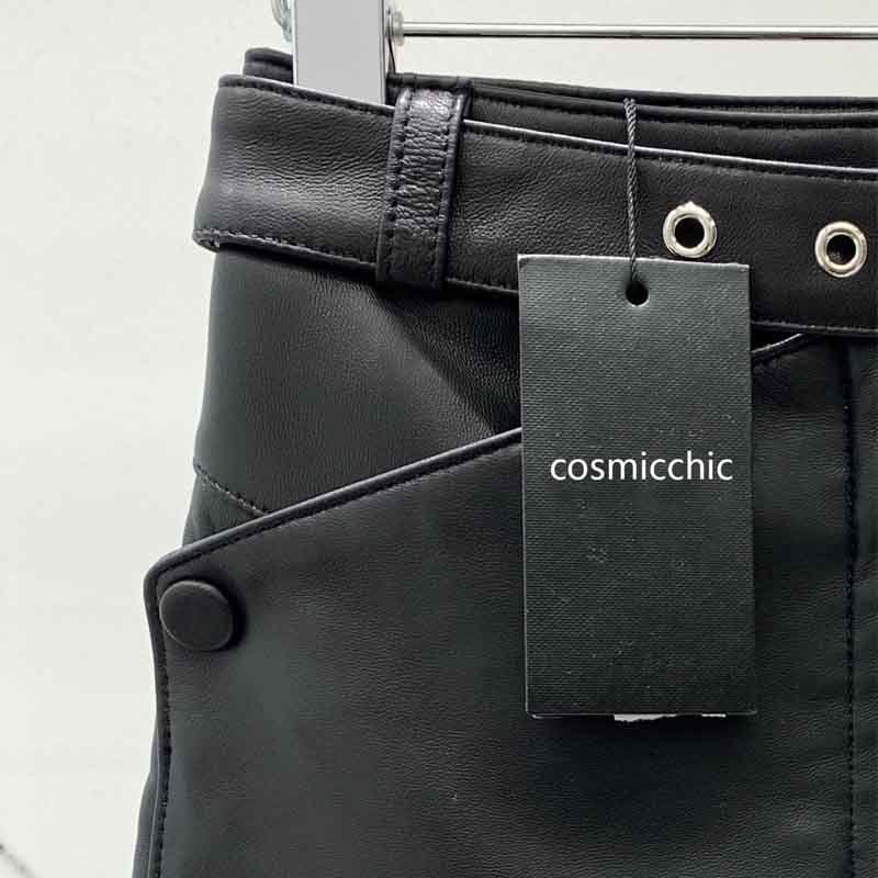 Early Autumn Genuine Leather Black Shorts Women Fashion Runway High Waist Pocket Design Sexy Short Pants Elegant Luxury Clothes.A0780