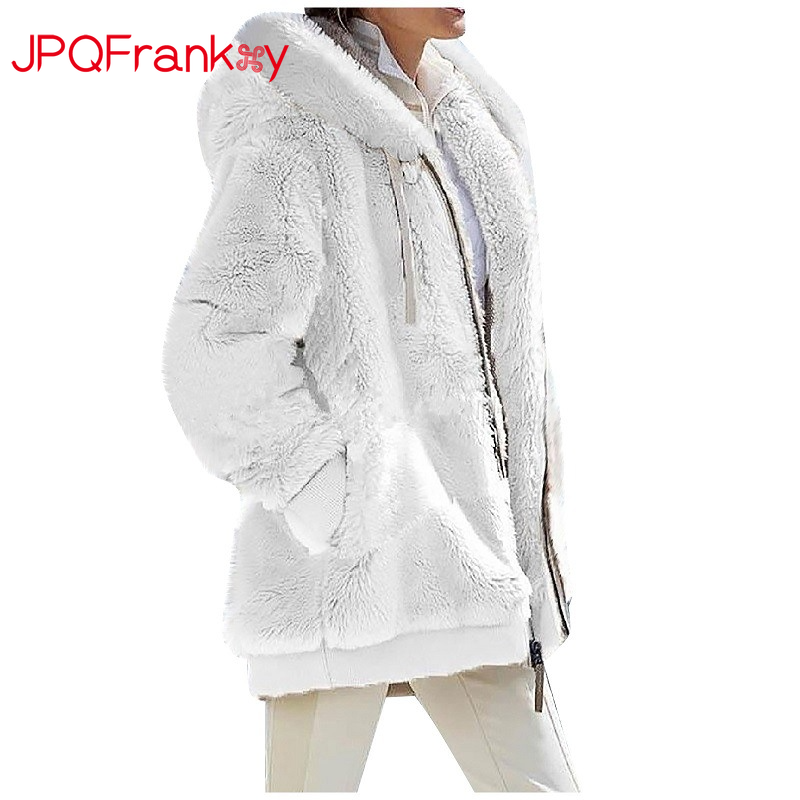 Europe and America Autumn and Winter Loose Plush Long Sleeve Zipper Pocket Hooded Warm Coat Women's Retro Quilt