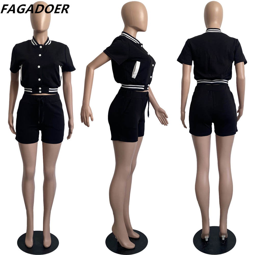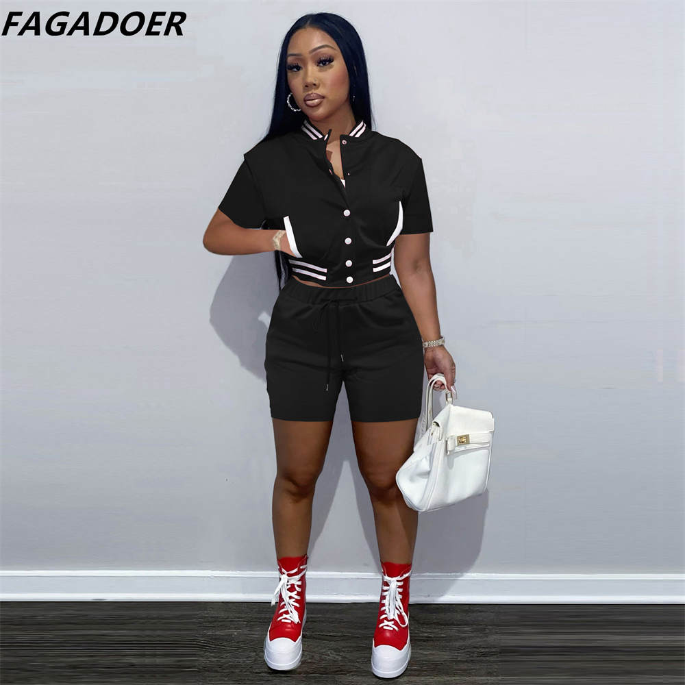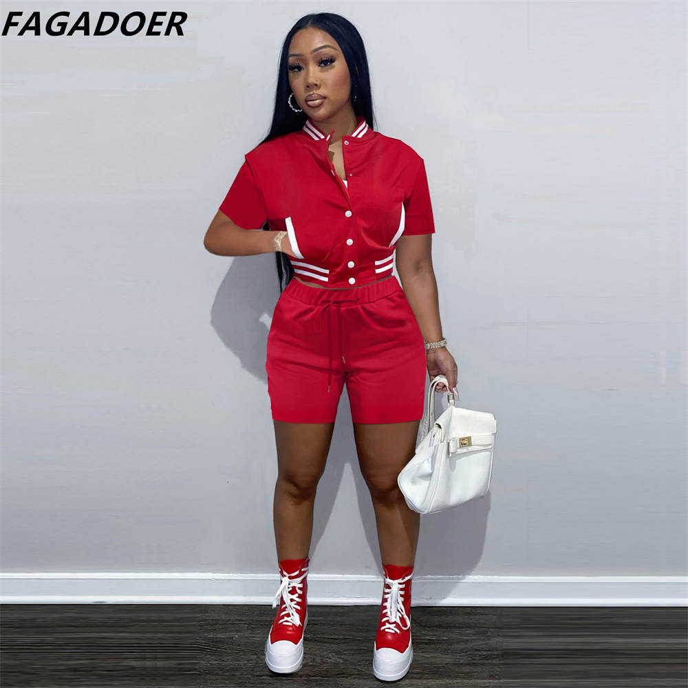 FAGADOER Casual Baseball Uniform Tracksuits Women Solid Button Short Sleeve Coat And Shorts Two Piece Sets Female Sport Outfits