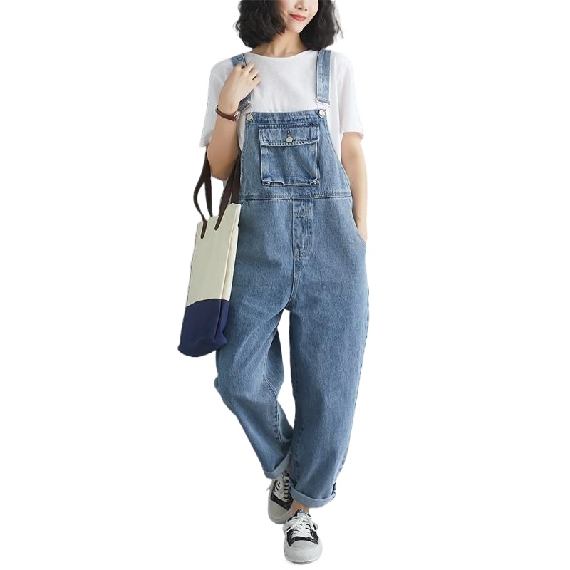 Fat Sister Denim Overalls Women's pants spring and autumn jeans pure cotton Large size Loose slimming jumpsuit