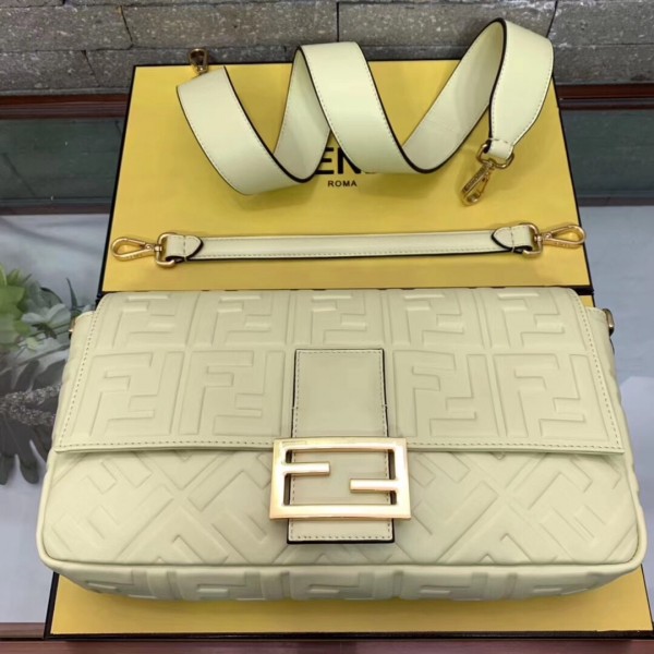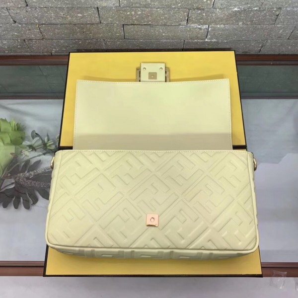 Fendi Beige FF Motif Large Baguette Bag