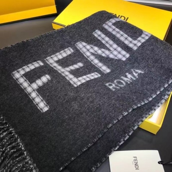 This timelessly elegant and luxurious Fendi scarf in soft wool and cashmere with Fendi Roma oversized lettering, lined with checked motif. Fringed hem, Its long, narrow shape enables it to be worn in many different ways.