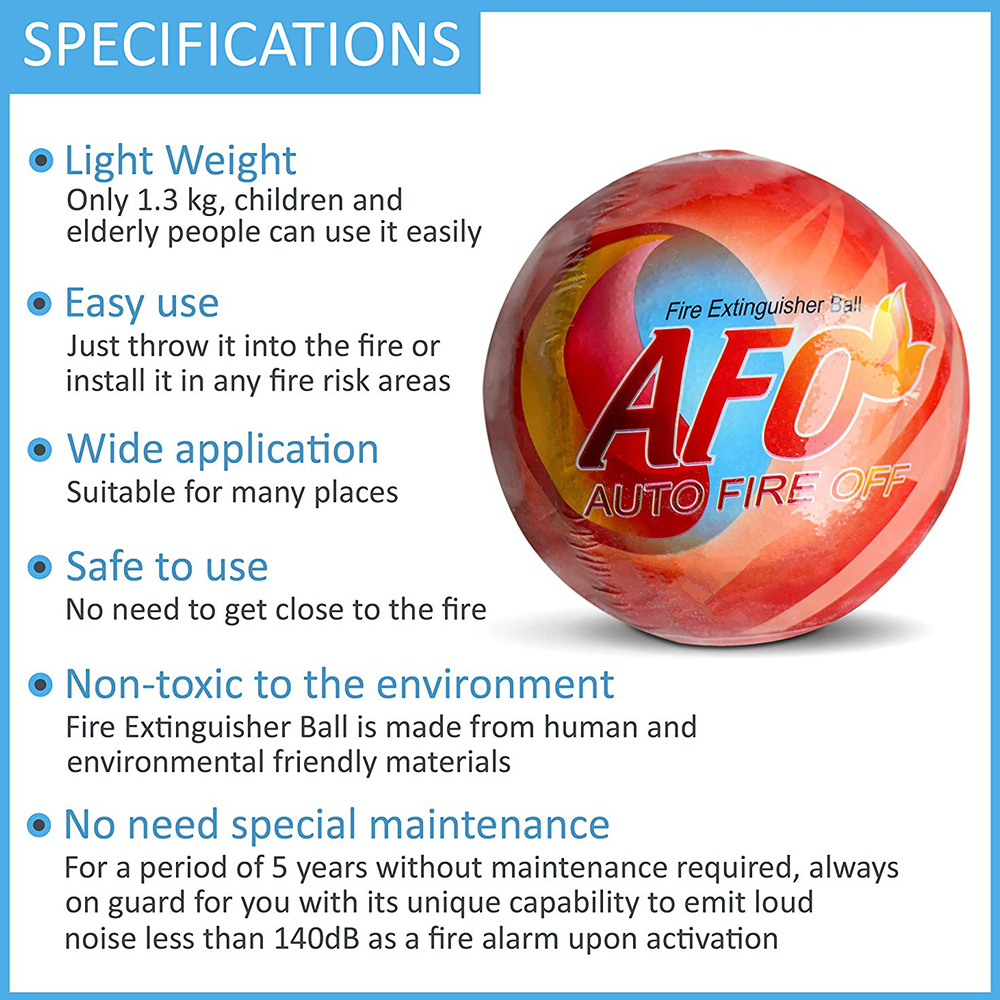 1. Simply throw into the fire, fire place or installed in fire-prone position, in case of fire, fire extinguisher ball can be carried out automatic with fast response.