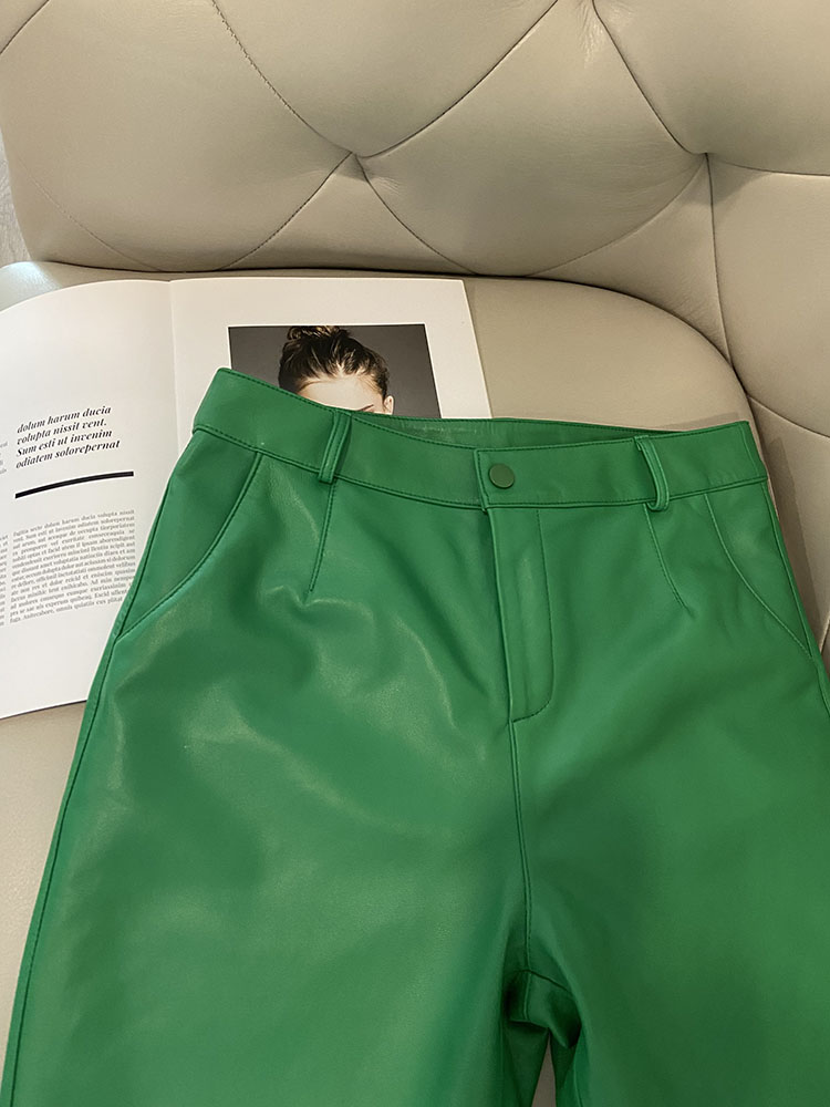 Genuine Leather Trousers Women Spring Autumn Real Sheepskin Leather Pants Women Streetwear High Waist