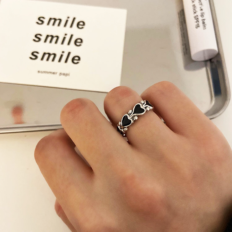 Goods : Korean ins trendy heart-shaped combination ring for men and women personality simple black love hollowed out adjustable