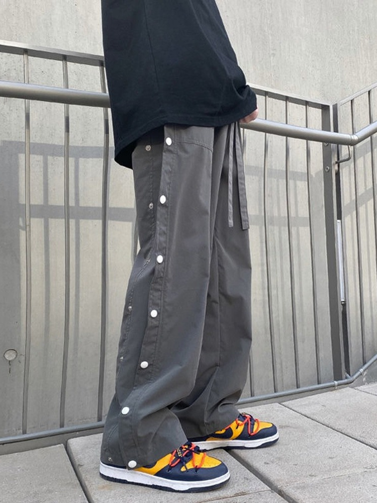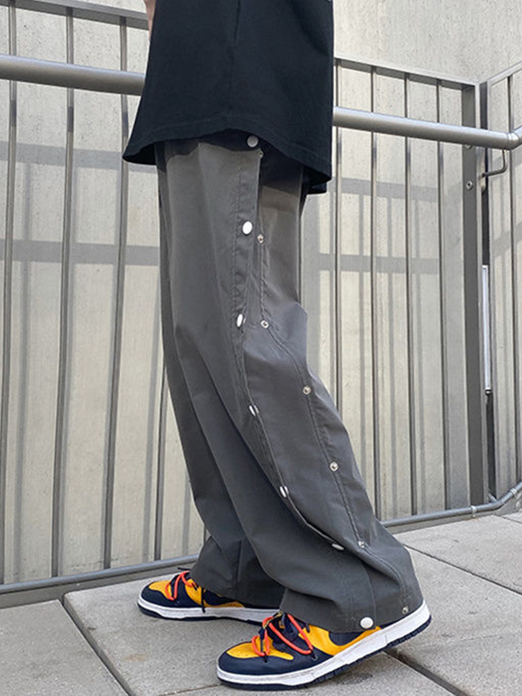 Goth Punk Men Pants Button Up Baggy Pants Black High Waist Wide Leg Pant Straight Trousers Baggy Hip Hop Cargo Casual Bottoms