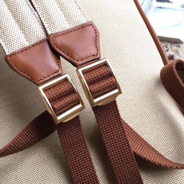 The classic backpack shape blends vintage appeal with traditional House codes in a softly structured shape. The distinctive Web is presented against beige canvas—a bi-colour woven fabric with a slight aged effect that enhances a vintage appearance. The rectangular shape is trimmed with leather and a small Interlocking G in gold-toned metal. New shapes and signature Gucci lines are reimagined in a mix of fabrics and trims imbued with an inherently summer feel.