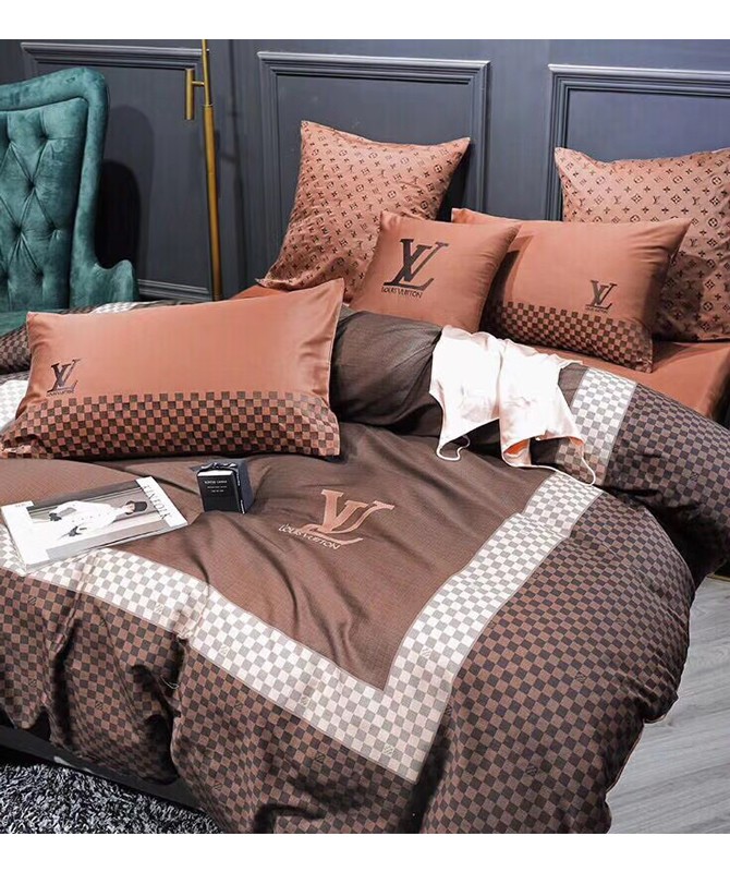 High-end copy louis vuitton home brown bedding set